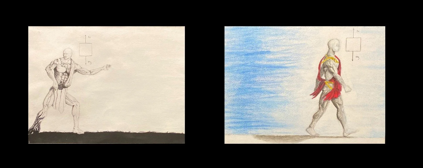 Idea: In free body diagrams in physics you can't tell whether or not the mass is moving with constant velocity or is stationary. I connected this with a real problem in life, that sometimes you can’t tell if you’re stuck in the same place or continuing to move.