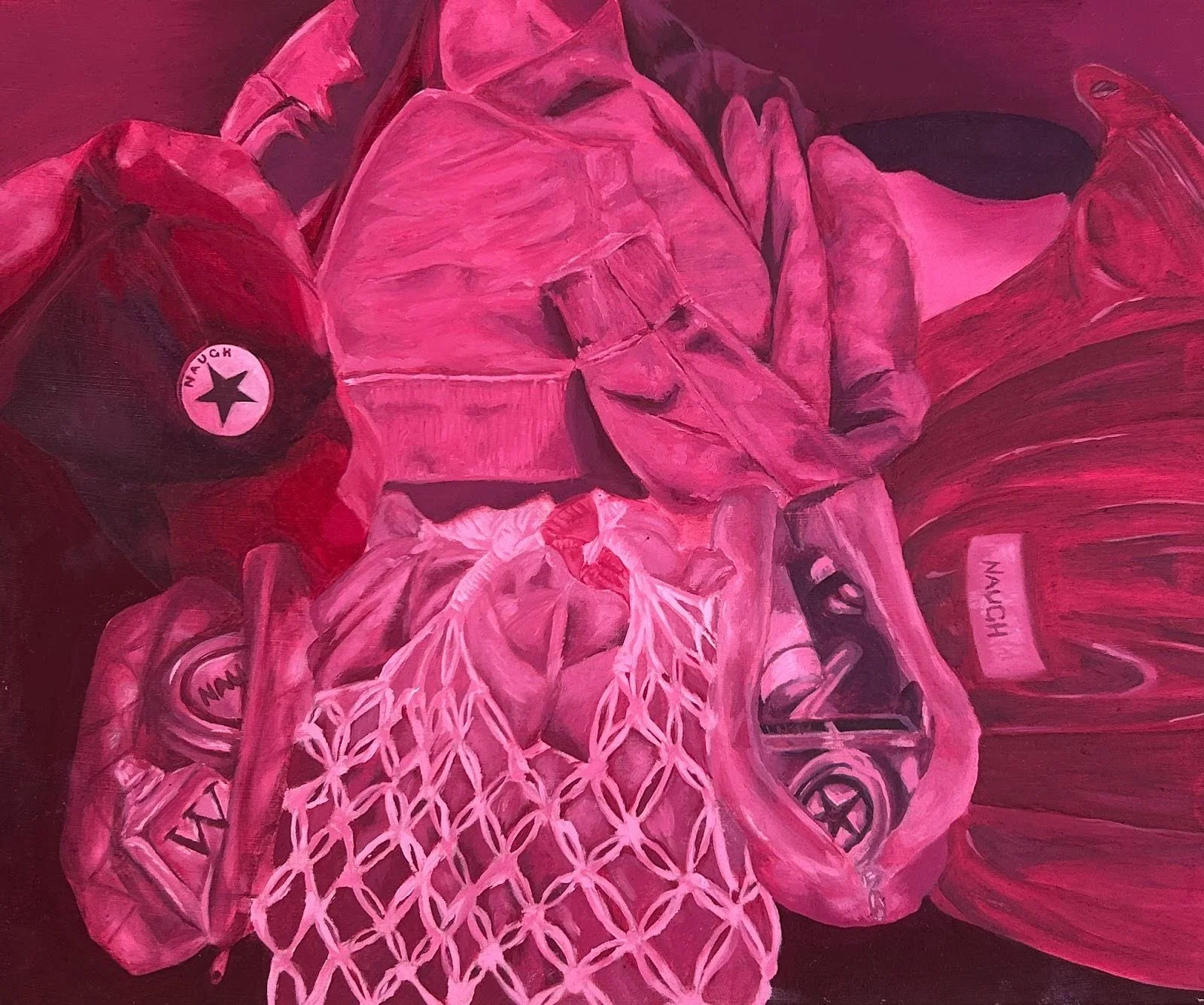 Process: I began with a general sketch of the forms and gathered some reference images to collage together. From there, I went section by section to block paint in.
